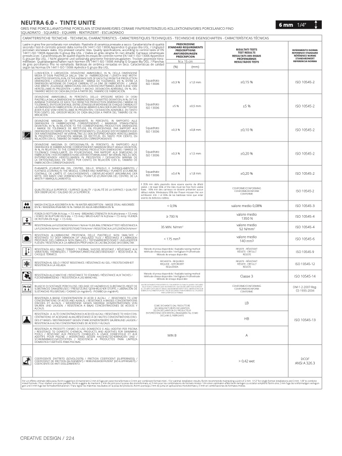 CARATTERISTICHE TECNICHE - TECHNICAL CHARACTERISTICS - CARACTERISTIQUES TECHNIQUES - TECHNISCHE EIGENSCHAFTEN - CARACTERÍSTICAS TÉCNICAS