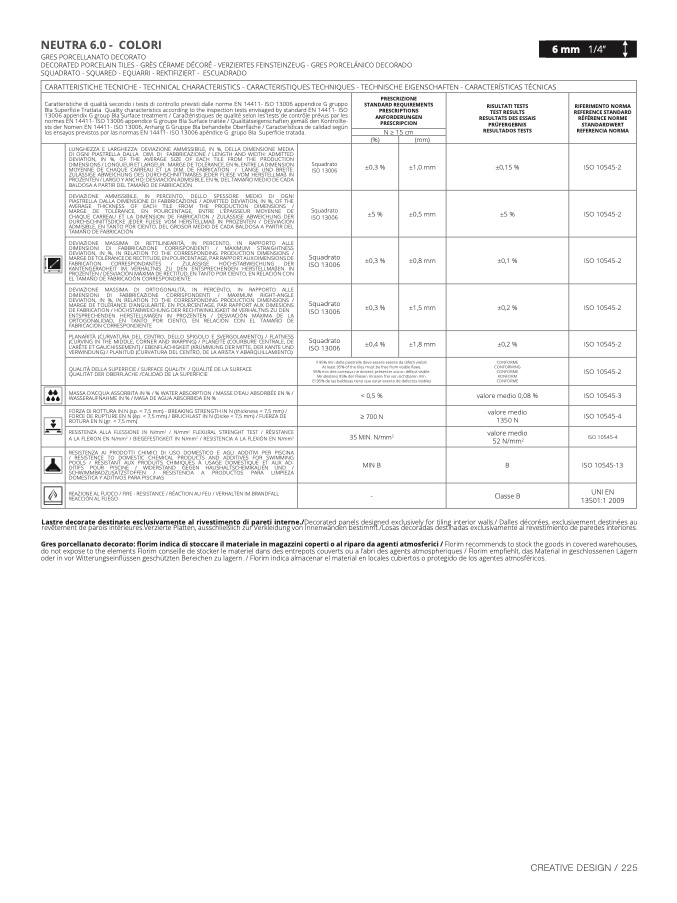 Caratteristiche di qualità secondo i tests di controllo previsti dalle norme EN 14411- ISO 13006 appendice G grupp