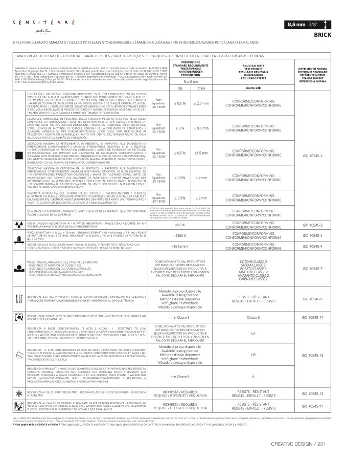 CARATTERISTICHE TECNICHE - TECHNICAL CHARACTERISTICS - CARACTERISTIQUES TECHNIQUES - TECHNISCHE EIGENSCHAFTEN - CARACTERÍSTICAS TÉCNICA