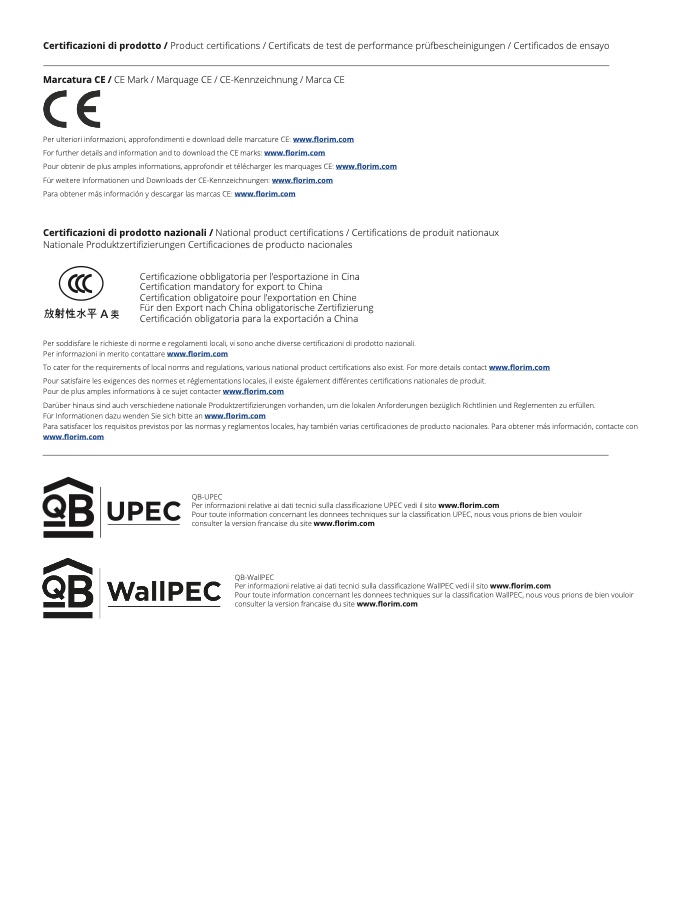 Per ulteriori informazioni, approfondimenti e download delle marcature CE: www.florim.com