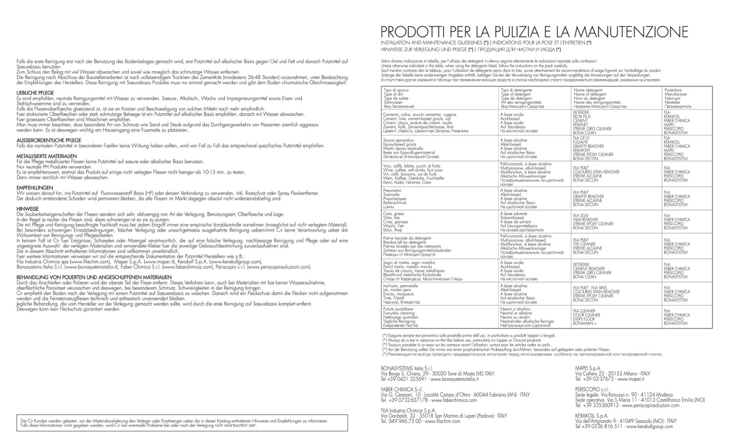 Fila Industria Chimica spa (www.filachim.com), Mapei S.p.A. (www.mapei.it), Kerakoll S.p.A. (www.kerakollgroup.com),