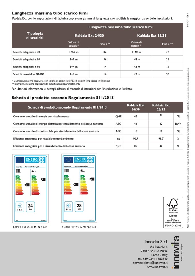 Kaldaia Ext con le impostazioni di fabbrica copre una gamma di lunghezze che soddisfa la maggior parte delle installazioni.