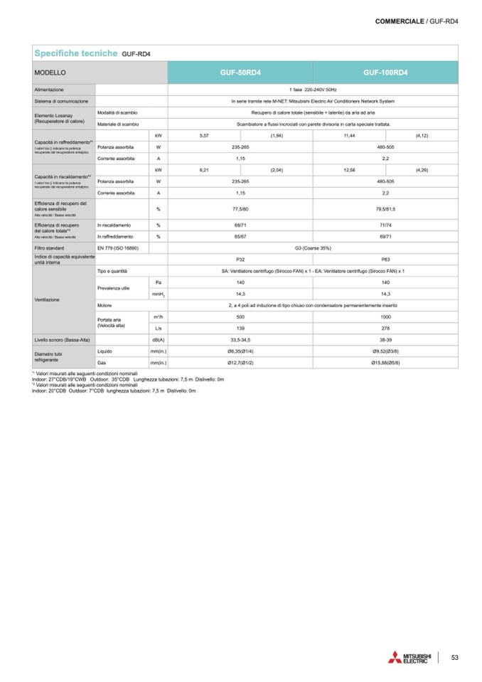 Indoor: 27°CDB/19°CWB Outdoor: 35°CDB Lunghezza tubazioni: 7,5 m Dislivello: 0m