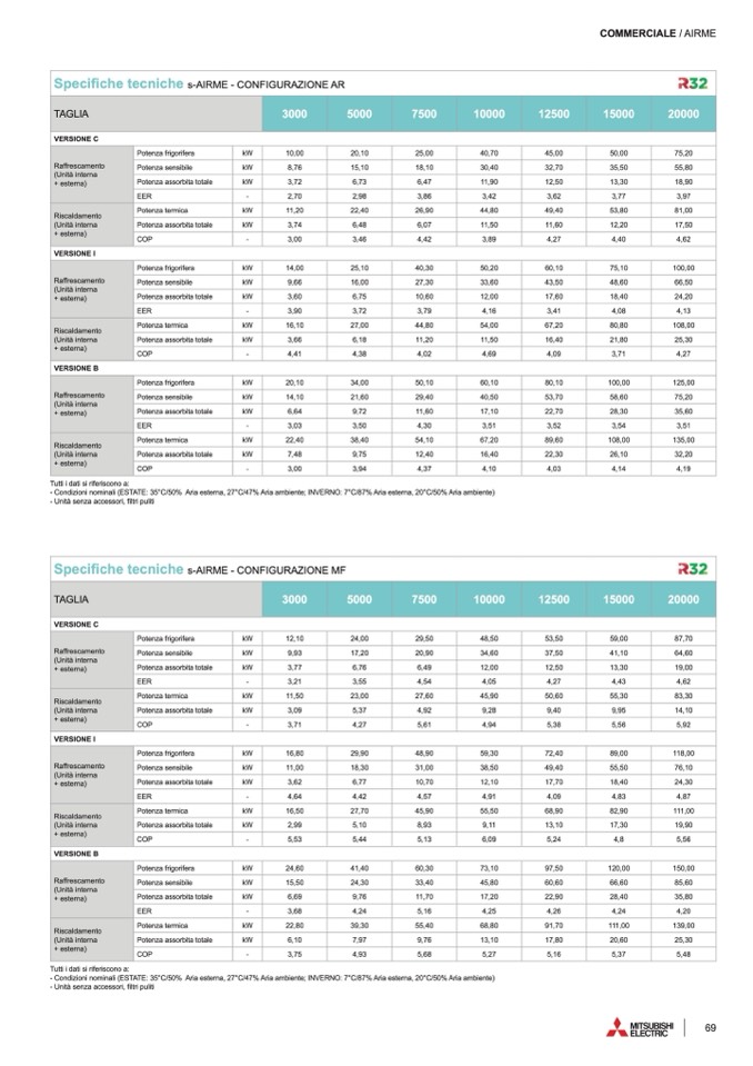 - Condizioni nominali (ESTATE: 35°C/50% Aria esterna, 27°C/47% Aria ambiente; INVERNO: 7°C/87% Aria esterna,