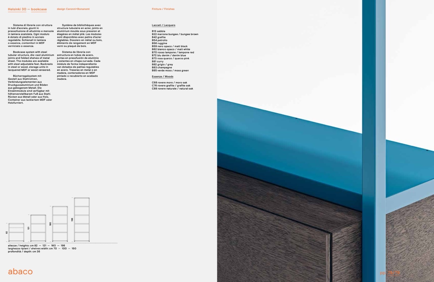 larghezza ripiani / shelves width: cm 70 — 100 — 150