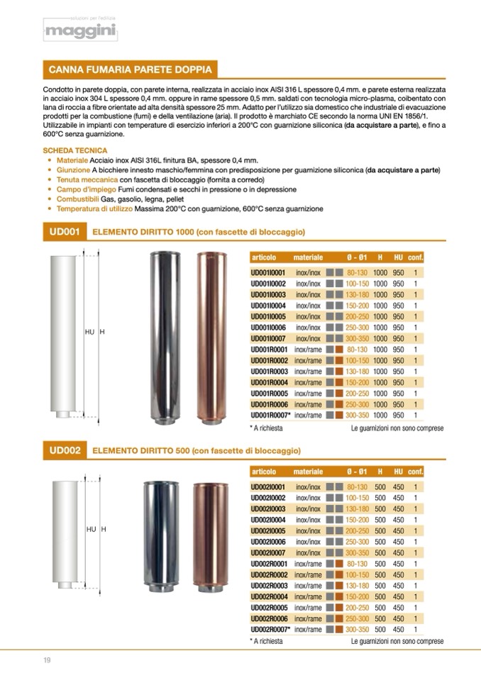 prodotti per la combustione (fumi) e della ventilazione (aria). Il prodotto è marchiato CE secondo la norma UNI EN 1856/1.
