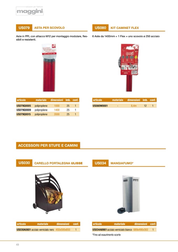 6 Aste da 1400mm + 1 Flex + uno scovolo ø 250 acciaio