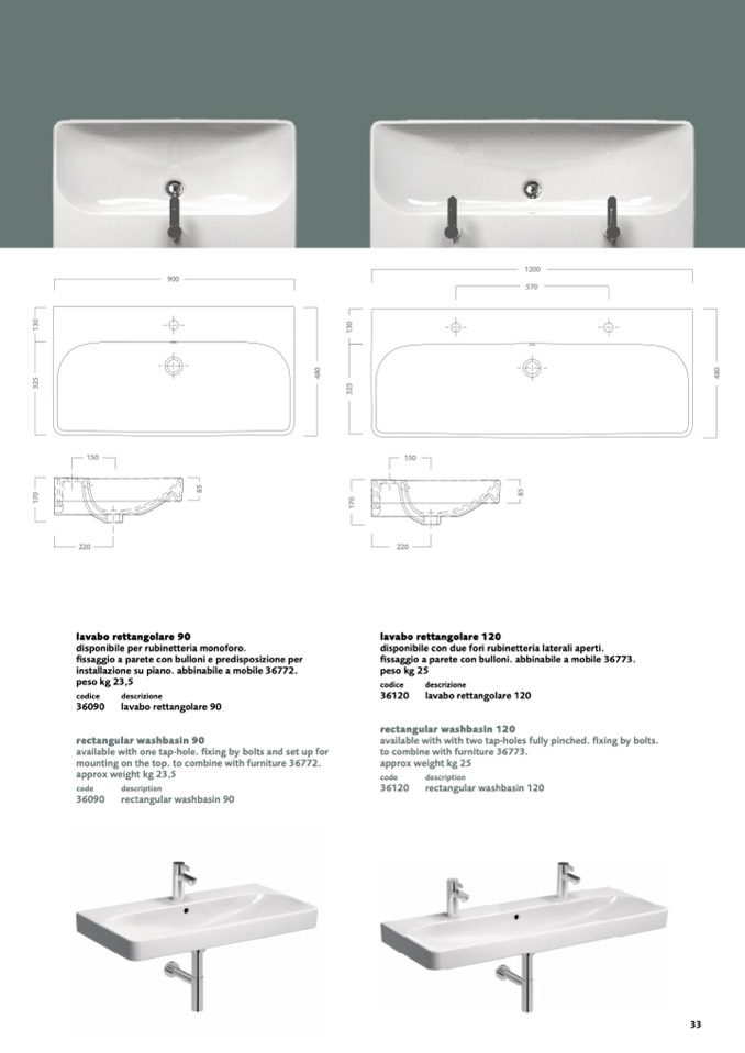 lavabo rettangolare 120
