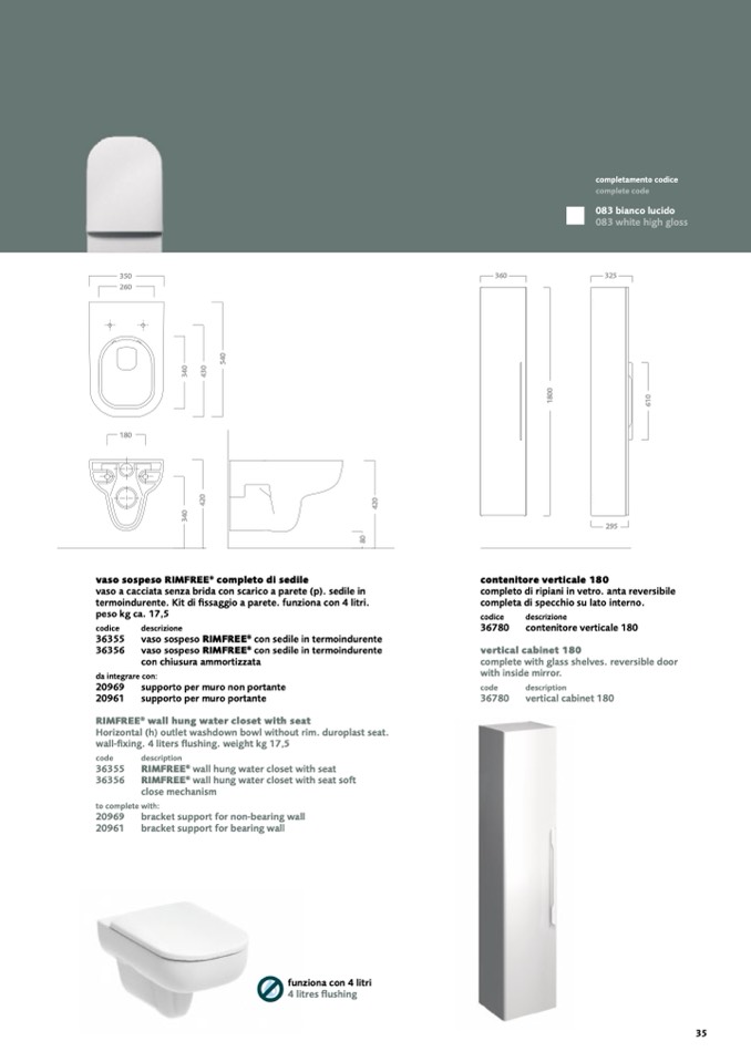 wall-fixing. 4 liters flushing. weight kg 17,5