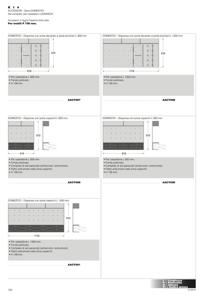 DOMESTICI - Dispensa con porta coperchi L 900 mm.
