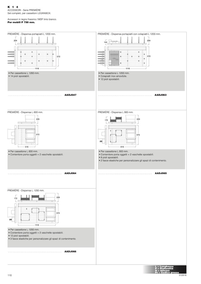 PREMIÈRE - Dispensa portapiatti L 1200 mm.