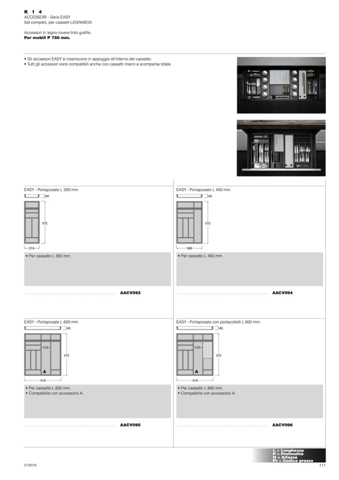 • Gli accessori EASY si inseriscono in appoggio all’interno del cassetto.