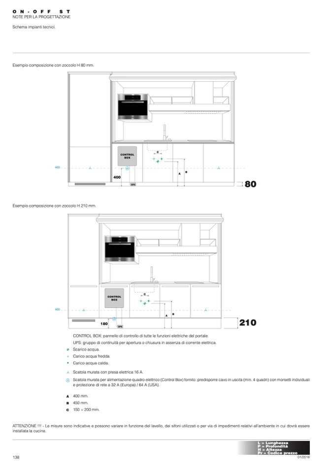 Esempio composizione con zoccolo H 210 mm.