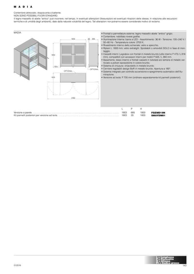 • Ripiani L 1800 mm: vetro extralight. Spostabili o amovibili SOLO in fase di mon-