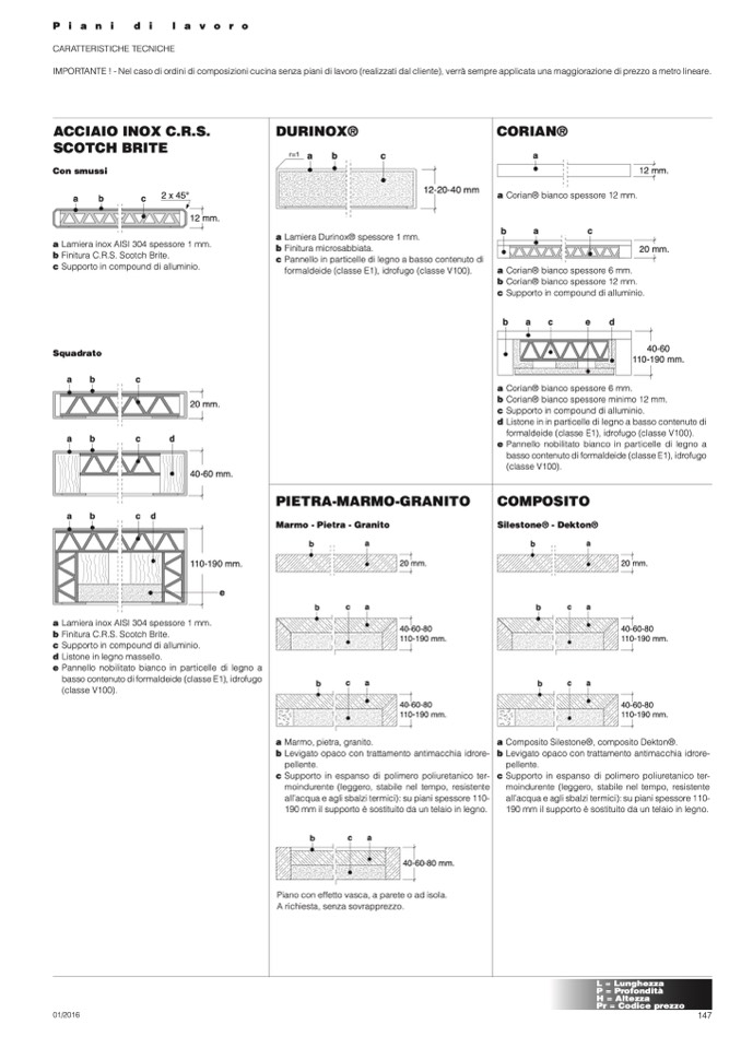 IMPORTANTE ! - Nel caso di ordini di composizioni cucina senza piani di lavoro (realizzati dal cliente), verrà sempre applicata una maggiorazione di prezzo a metro lineare.