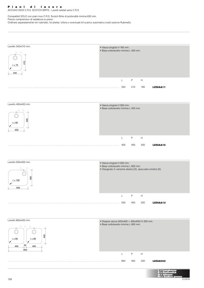 Compatibili SOLO con piani inox C.R.S. Scotch Brite di profondità minima 630 mm.