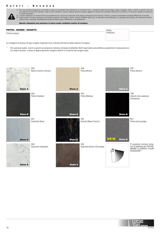 1) Per una corretta valutazione di tonalità e colore è necessario fare riferimento ai campioni fisici. I campioni delle finiture legno, legno massello, pietra, marmo e granito sono da