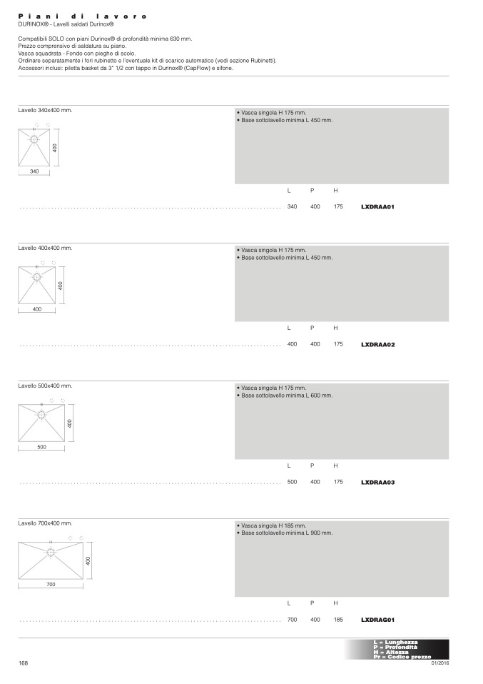 Compatibili SOLO con piani Durinox® di profondità minima 630 mm.