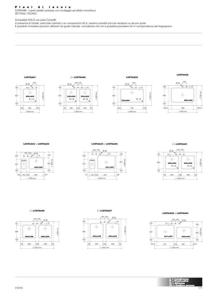 In presenza di fondali, particolari rubinetti o su composizioni XILA, saranno possibili piccole variazioni su alcune quote.