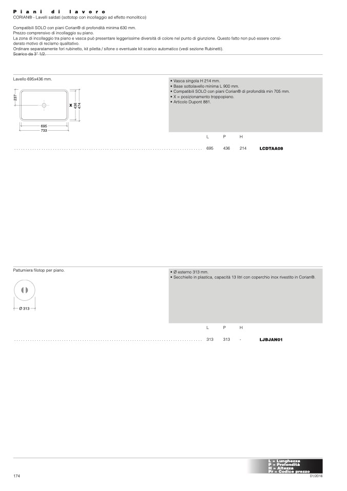 • Compatibili SOLO con piani Corian® di profondità min 705 mm.