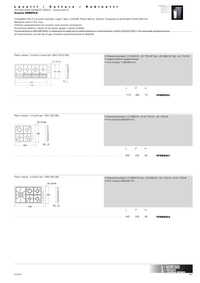 Piano cottura - 4 fuochi in linea (art. 930715210 DB).