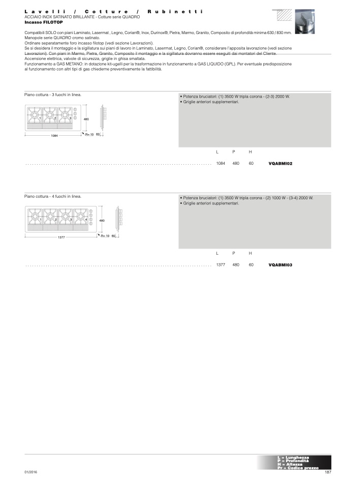 Se si desidera il montaggio e la sigillatura sui piani di lavoro in Laminato, Lasermat, Legno, Corian®, considerare l’apposita lavorazione (vedi sezione