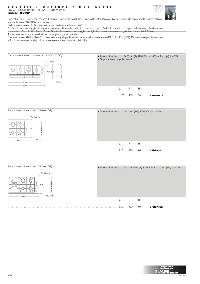Piano cottura - 4 fuochi in linea (art. 930715160 DB).