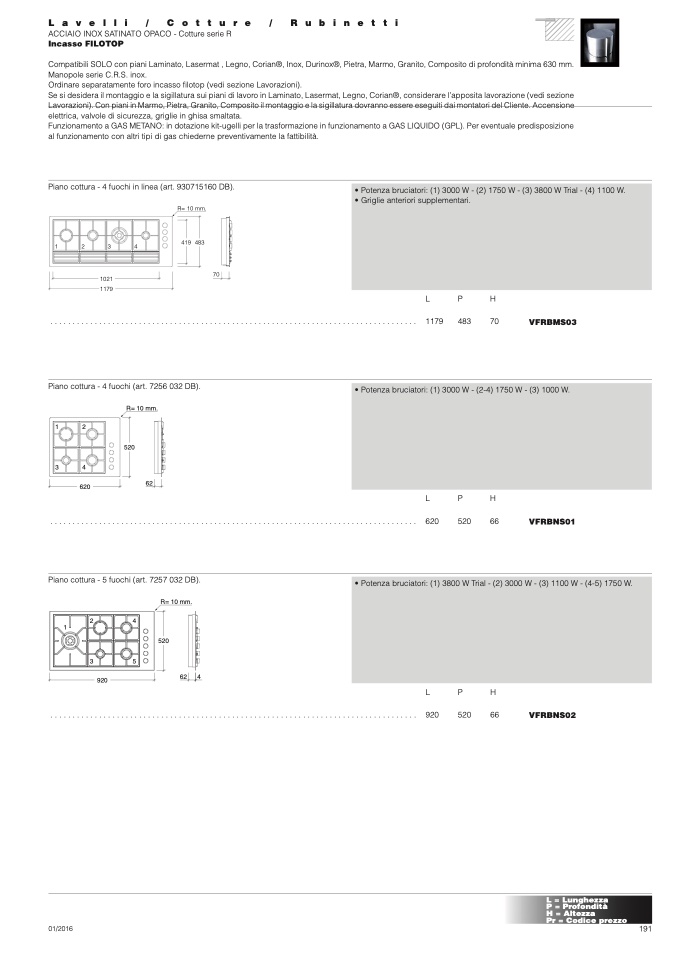 Piano cottura - 4 fuochi in linea (art. 930715160 DB).