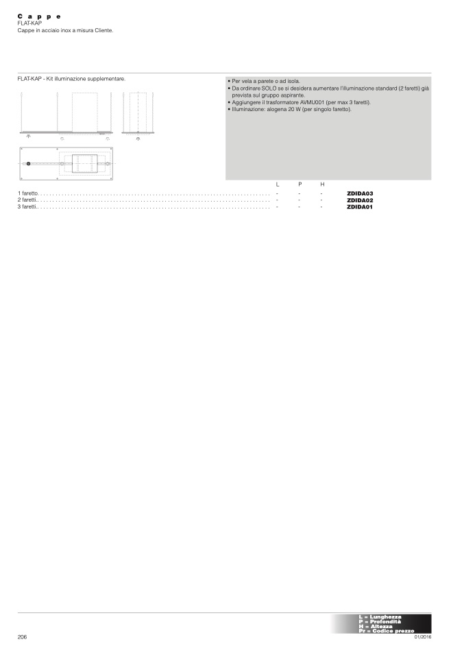 • Da ordinare SOLO se si desidera aumentare l’illuminazione standard (2 faretti) già