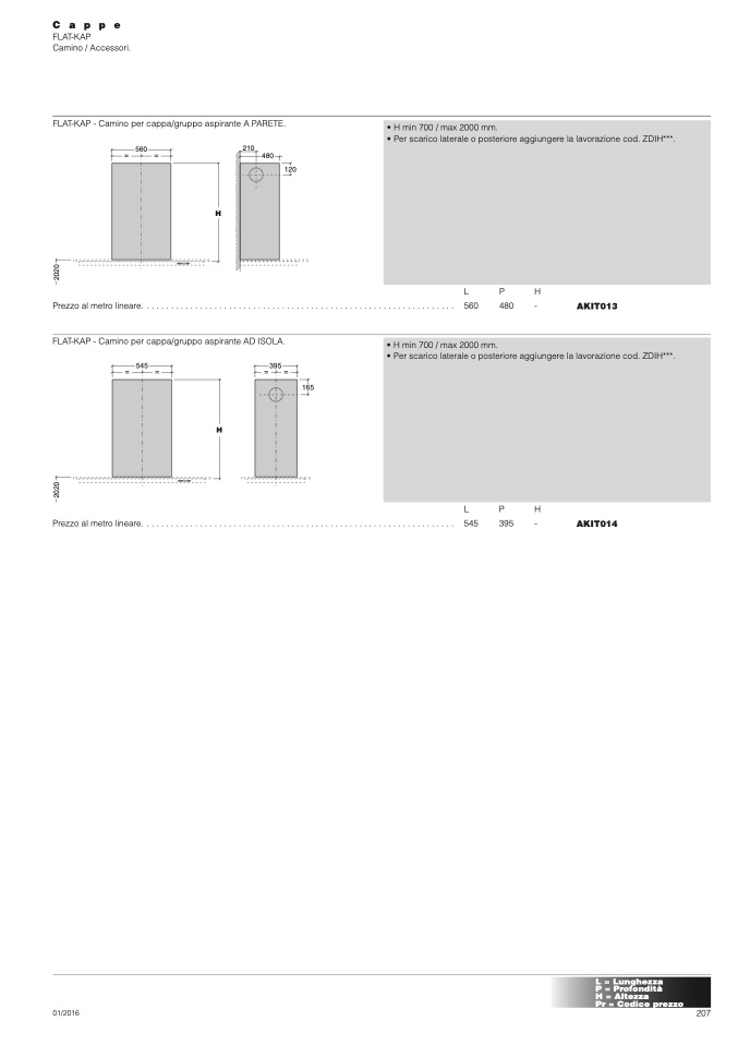 FLAT-KAP - Camino per cappa/gruppo aspirante A PARETE.