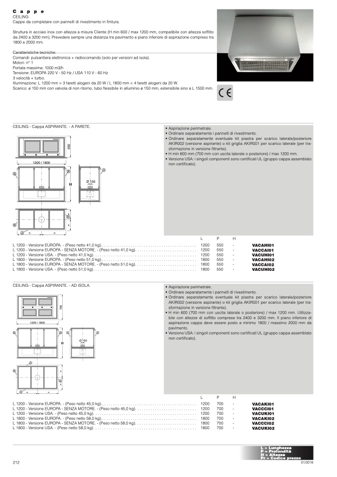 • Versione USA: i singoli componenti sono certificati UL (gruppo cappa assemblato