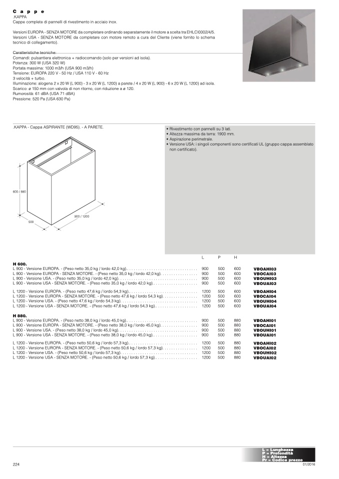 • Versione USA: i singoli componenti sono certificati UL (gruppo cappa assemblato