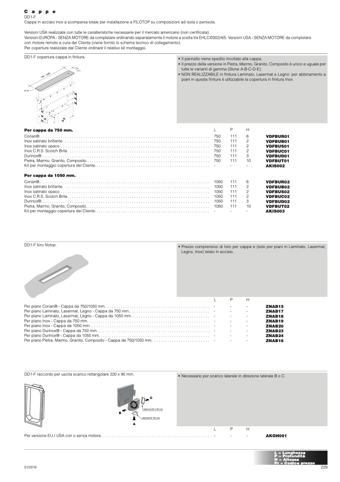 Per piano Corian® - Cappa da 750/1050 mm. ..................