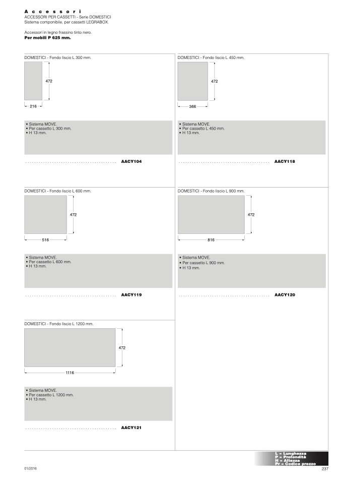 ACCESSORI PER CASSETTI - Serie DOMESTICI