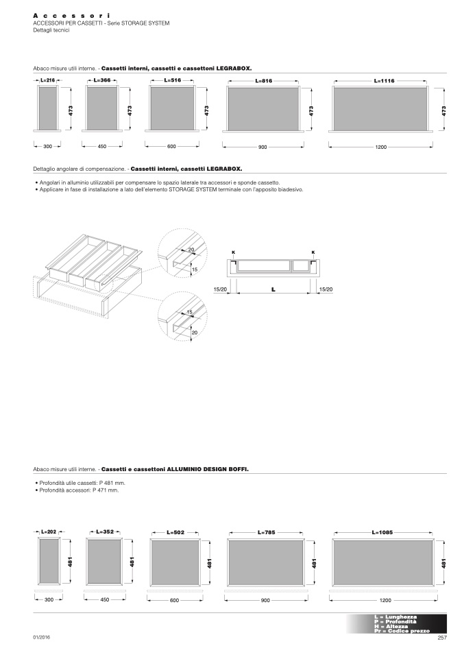 Abaco misure utili interne. - Cassetti interni, cassetti e cassettoni LEGRABOX.