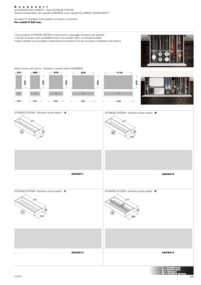 • Tutti gli accessori sono compatibili anche con cassetti interni a scomparsa totale.