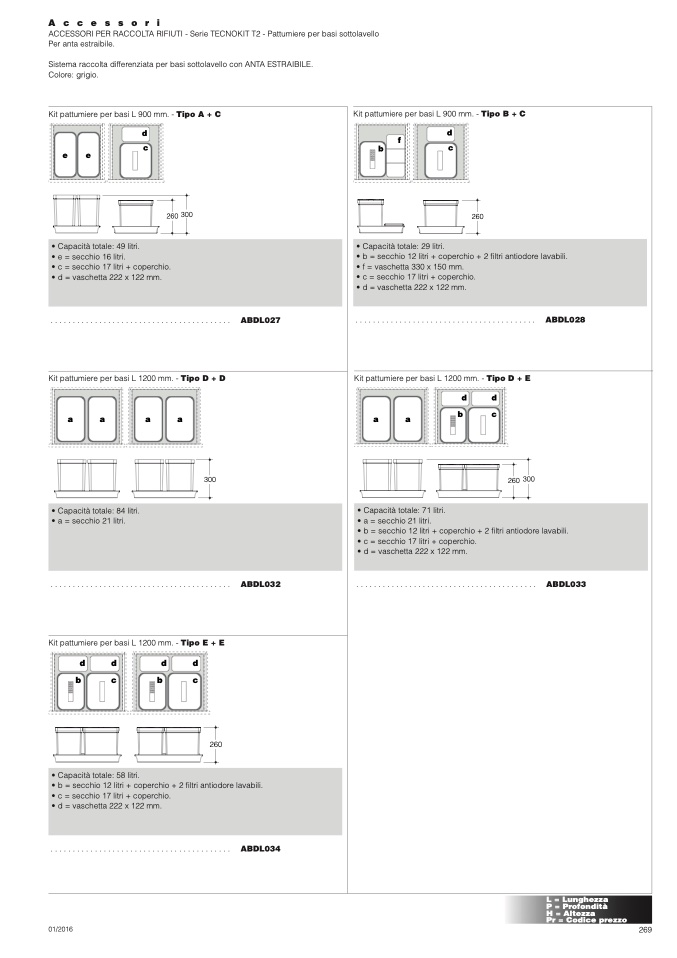 ACCESSORI PER RACCOLTA RIFIUTI - Serie TECNOKIT T2 - Pattumiere per basi sottolavello