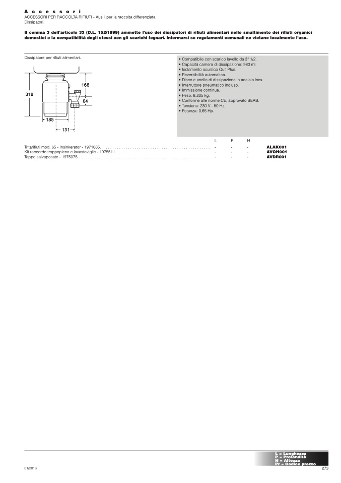Tritarifiuti mod. 65 - Insinkerator - 1971065.. . . . . . . . . . . . . . . . . . . . . . . . . . . . . . . . . . . . . . . . . . . . . . . . .