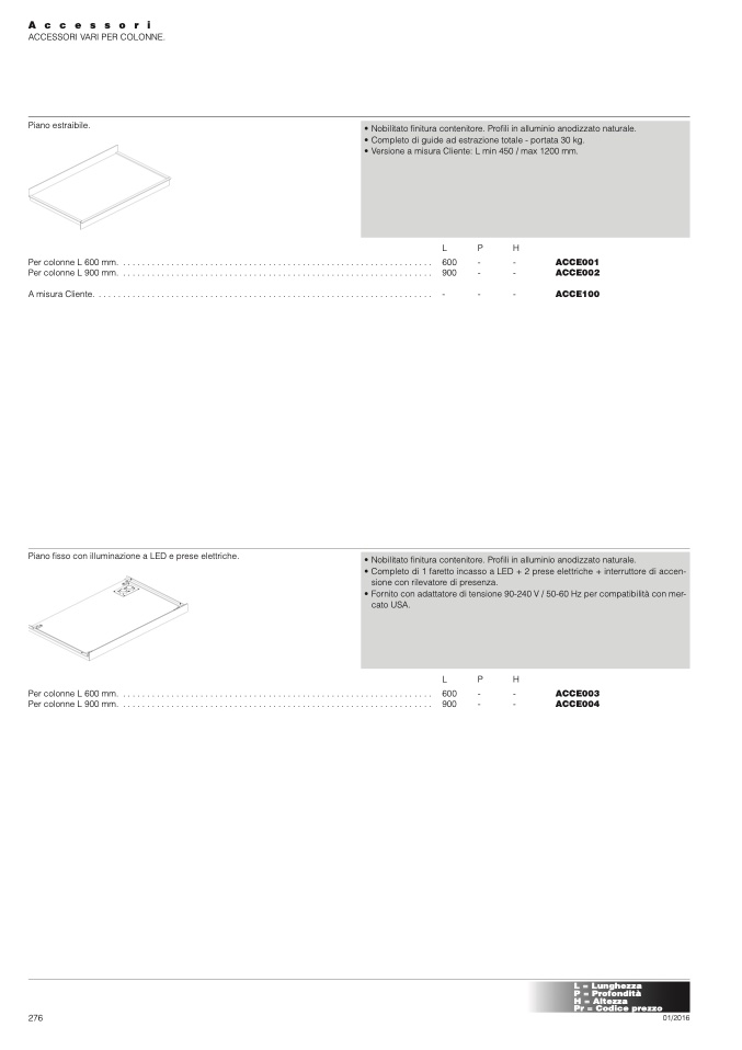 • Versione a misura Cliente: L min 450 / max 1200 mm.