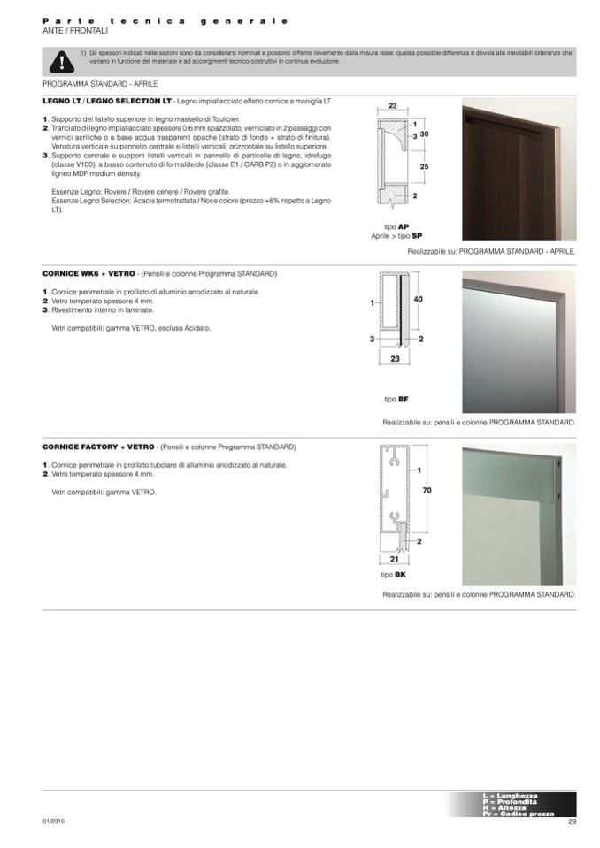 Realizzabile su: pensili e colonne PROGRAMMA STANDARD.