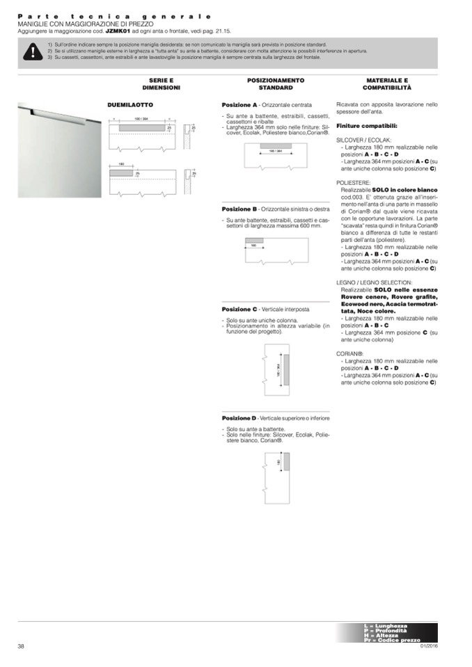1) Sull’ordine indicare sempre la posizione maniglia desiderata: se non comunicato la maniglia sarà prevista in posizione standard.