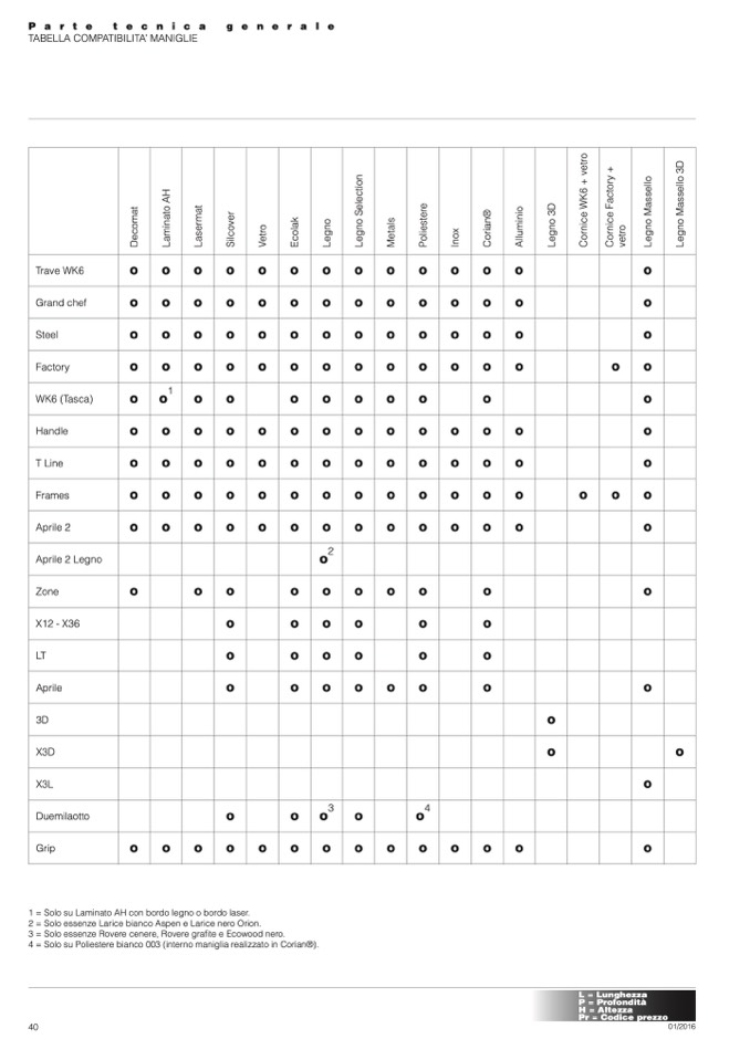 1 = Solo su Laminato AH con bordo legno o bordo laser.