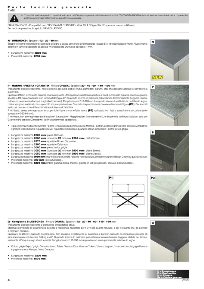 1) E’ possibile realizzare piani in profondità a richiesta del Cliente (non previste dal listino) entro i limiti di PROFONDITÀ MASSIMA indicati: inoltrare la relativa richiesta di preventivo