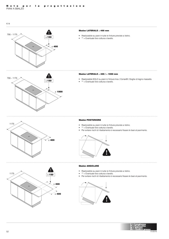 • Realizzabile SOLO su piani in finitura Inox / Corian® / Doghe di legno massello.