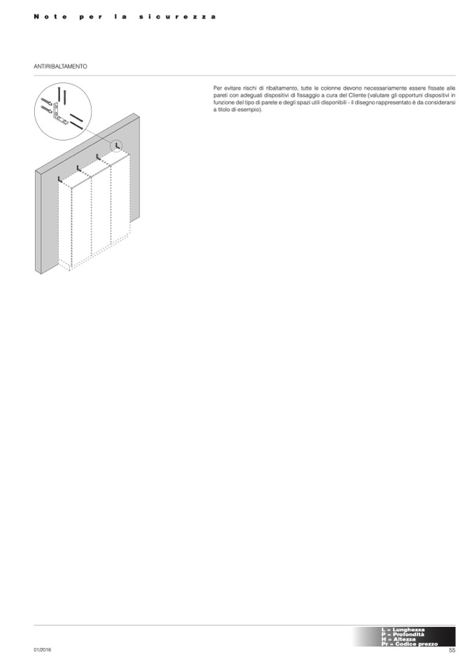 Per evitare rischi di ribaltamento, tutte le colonne devono necessariamente essere fissate alle