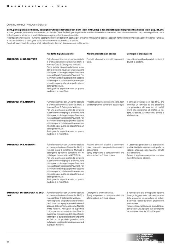 Boffi, per la pulizia ordinaria, consiglia l’utilizzo del Clean Set Boffi (cod. AVBL022) e dei prodotti specifici presenti a listino (vedi pag. 21.20).