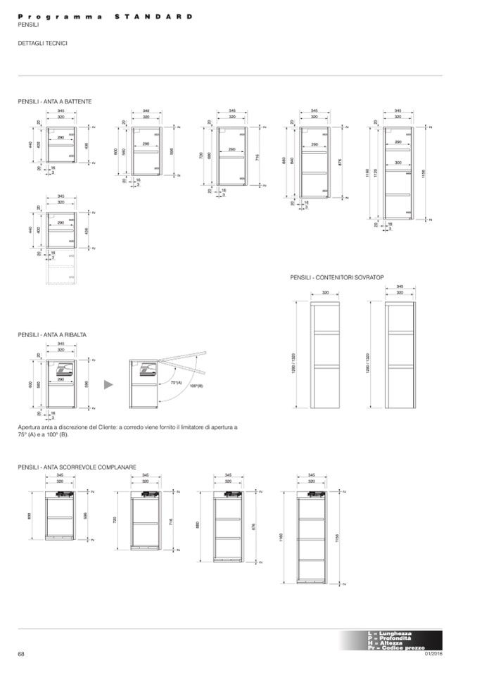 Apertura anta a discrezione del Cliente: a corredo viene fornito il limitatore di apertura a
