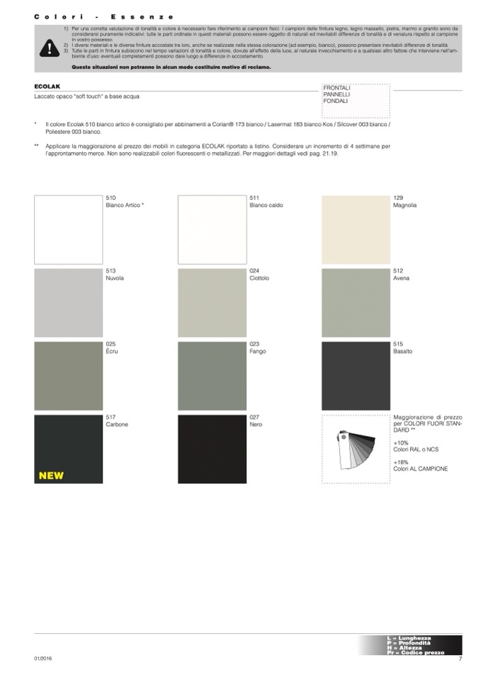 1) Per una corretta valutazione di tonalità e colore è necessario fare riferimento ai campioni fisici. I campioni delle finiture legno, legno massello, pietra, marmo e granito sono da