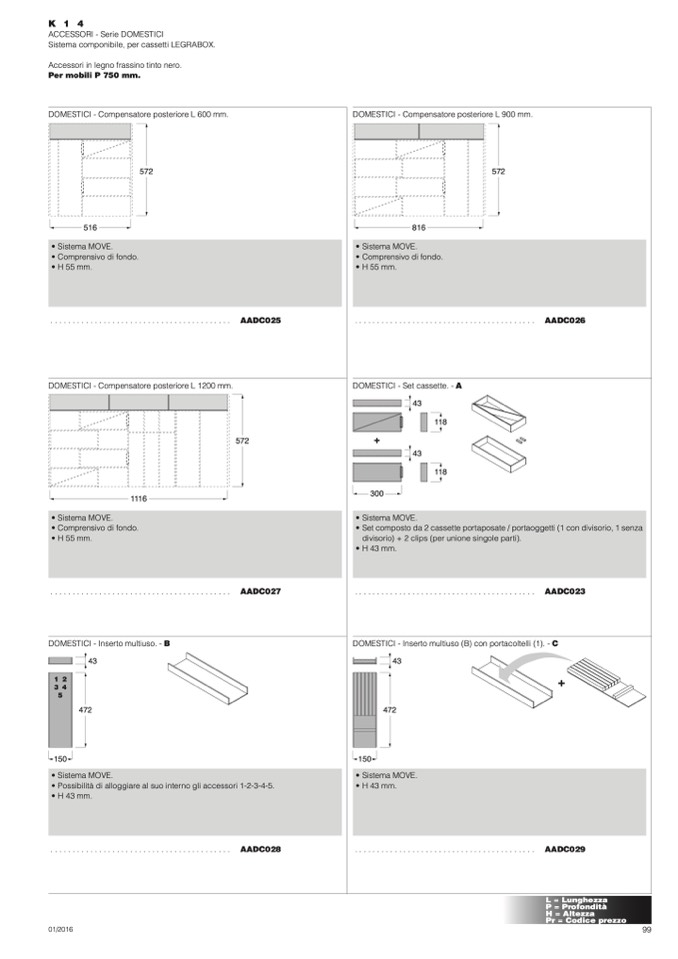 Sistema componibile, per cassetti LEGRABOX.
