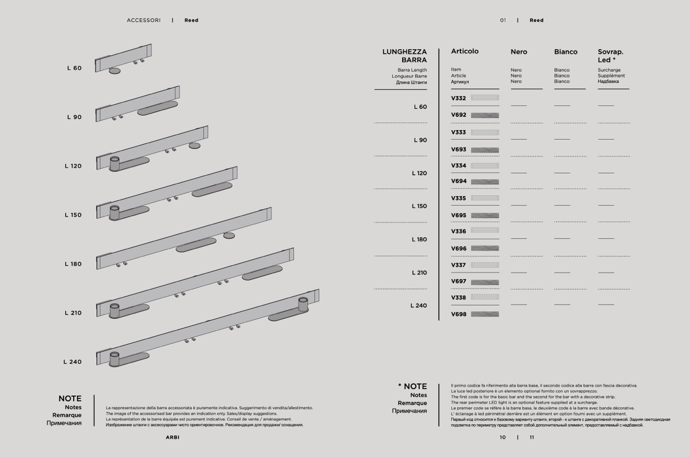 Il primo codice fa riferimento alla barra base, il secondo codice alla barra con fascia decorativa.
